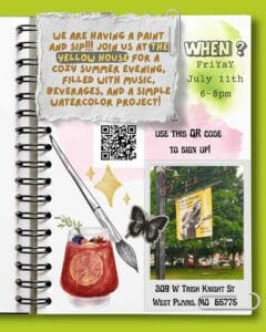 Sign up for a fun night of Paint and Sip with Madyson Callahan. $40 covers your supplies and lesson. Come create your own masterpiece and Sip and enjoy. Scan the QR code for a link. Visit the Facebook event page Paint and Sip for more information.